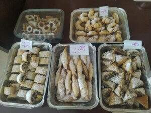 להכין כל צורה – מגולגלות , סהרונים של אגוזים , ממרח תמרים , עוגיות עם ריבה וכו'