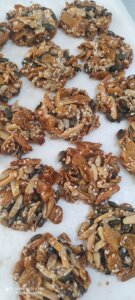 מכניסים לתנור ואופים כ 12-15 דקות (או עד שהתערובת מקבלת גוון זהוב עמוק ויפה). שימו לב לא לשרוף – הפיצוחים משחימים מהר בדקות האחרונות.