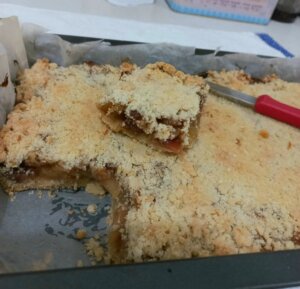 מחזירים לתנור (170 מעלות) לכ-30 דקות נוספות, או עד שהפירורים למעלה זהובים ויפים.