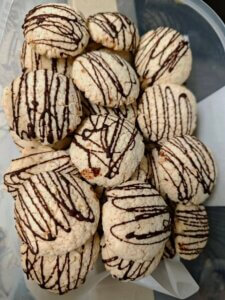 לאחר שהעוגיות מתקררת לחלוטין ממיסים שוקולד מריר עם כפית שמן במיקרוגל בתוך שקית זילוף.