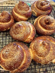 מורחים בעדינות על הלחמניות ומפזרים שומשום.