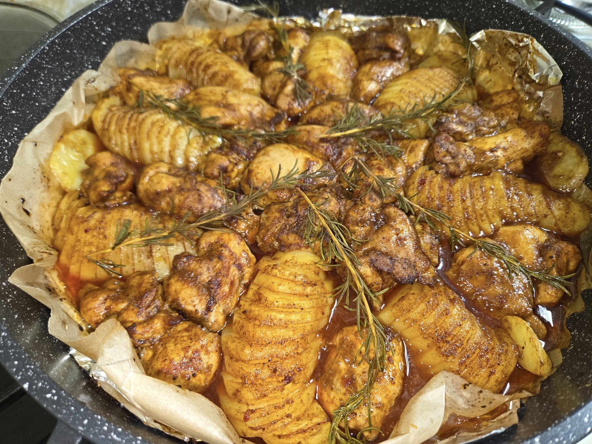 פרגיות נימוחות בתנור בטעם מתקתק עם תפוחי אדמה וניחוח של רוזמרין