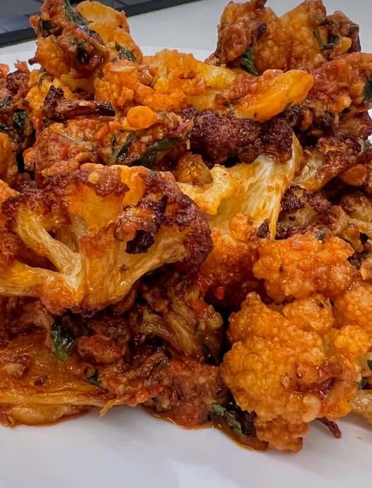 כרובית מתובלת וחריפה בתנור תענוג בכל ביס פיקנטי וטעים כרובית צרובה בתנור ברוטב אריסה, שום וכוסברה מנה נהדרת המשלבת קראנצ'יות של כרובית אפויה עם
