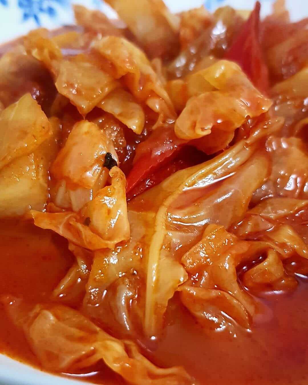 עילפון חושים תבשיל כרוב ברוטב עגבניות פיקנטי אריאלה גולדמן המרכיבים- בצל כורכום פלפל צ'ילי 3 עגבניות 3 שיני שום כתוש קוספה רסק קטנה מיץ